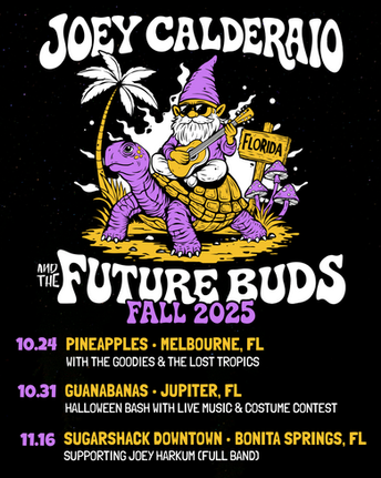 Joey's musical passion radiates through his songwriting, production, and, most notably, his live shows. Backed by the exceptional musicians of The Future Buds, they've ignited stages on nationwide tours and at festivals like Reggae Rise Up and SunFest. Most recently, Joey and his band performed on the iconic Sugarshack Sessions - and made their debut at the brand new Sugarshack Downtown Venue in Bonita Springs FL.
